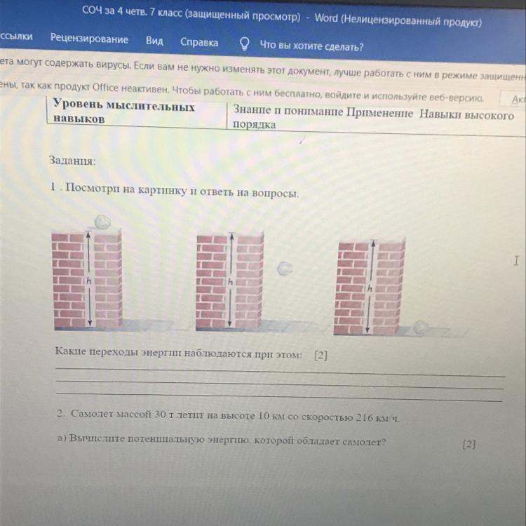 1) Картинка №1 - Шарик лежит, не двигаясь, на кирпичной колонне. В этот момент шар имеет только потенциальную энергию, так как находится на какой-то высоте h.