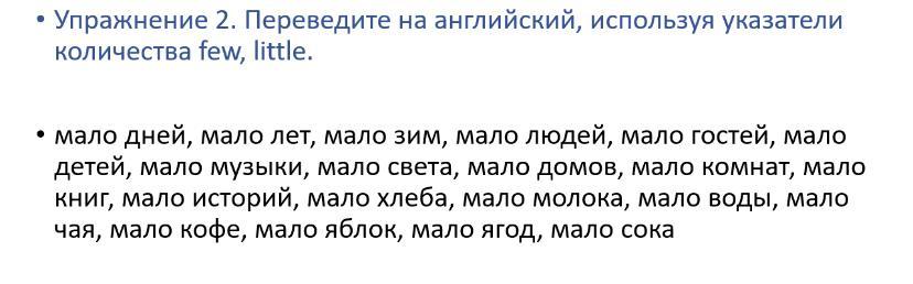 few days, few years, few winters,few people,few guests, few children,little music,little light,few homes,few rooms,few books,few stories,little bread,little milk,little water,little tea,;little coffee,few apples,few berries,little juice.
