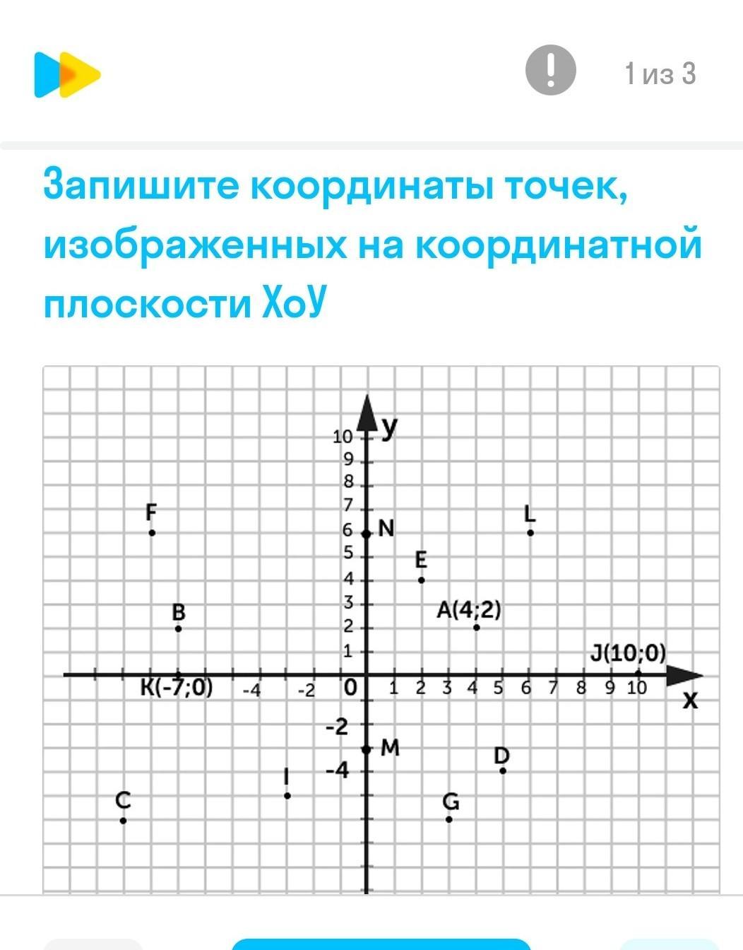 F(8;6); B(-7;2); K(-7;0); С(-9;-6); A(4;2); N(0;6); M(0;-3); E(2;4);J(10;0); I(-3;-5); L(6;6); D(5;4); G(3;-6)