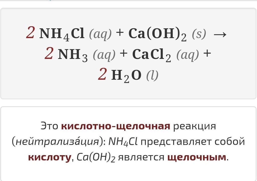 Ca(OH)2 + 2 NH4Cl => CaCl2 + 2 NH3↑ + 2 H2O