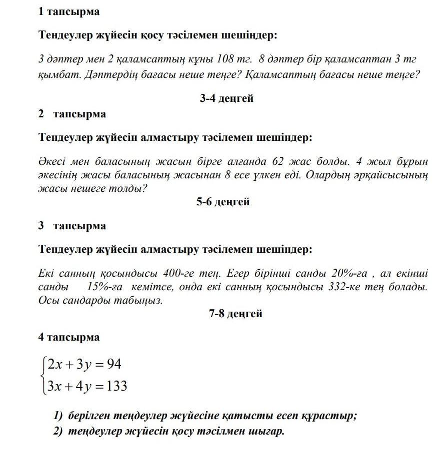 8х-3=у (8 тетрадей стоят на 3 тенге больше одной ручки)