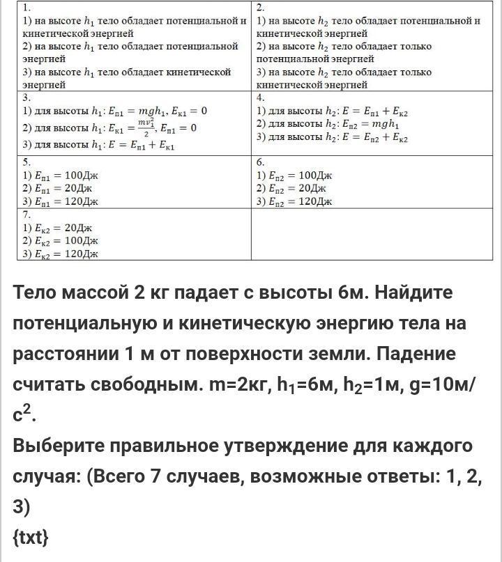 Выберите правильное утверждение для каждого случая: (Всего 7 случаев, возможные ответы: 1, 2, 3)