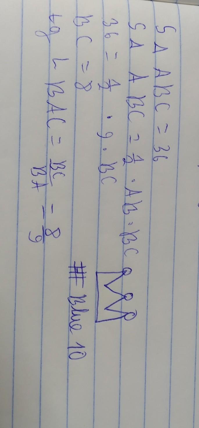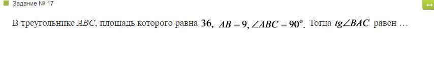 В треугольнике ABC, площадь которого равна 36, AB=9, ABC=90градусам.