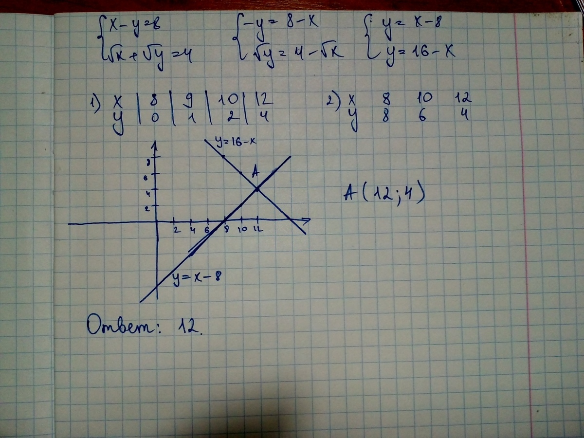 корень х=4-кореньу
