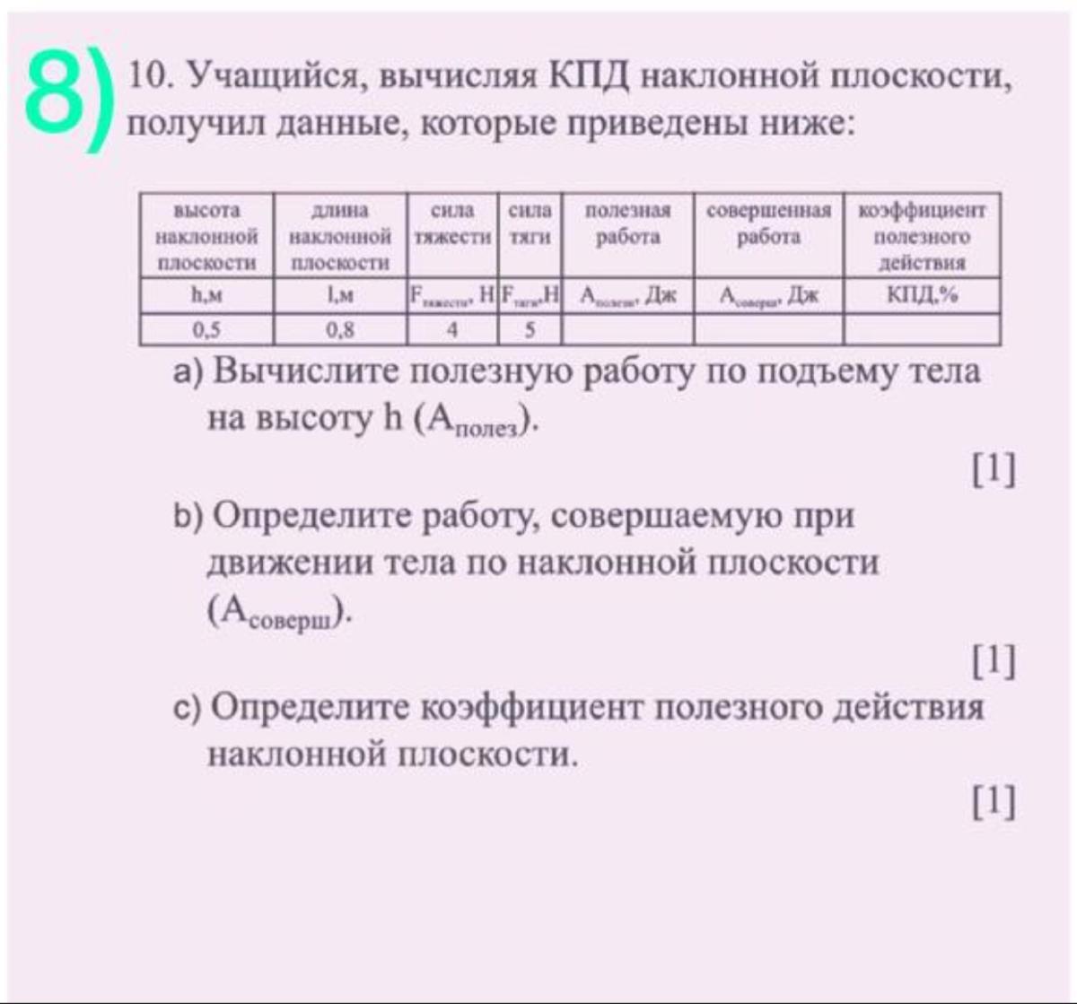 a) А полезная - F(тяжести) * h = 4*0,5 = 2 Дж
