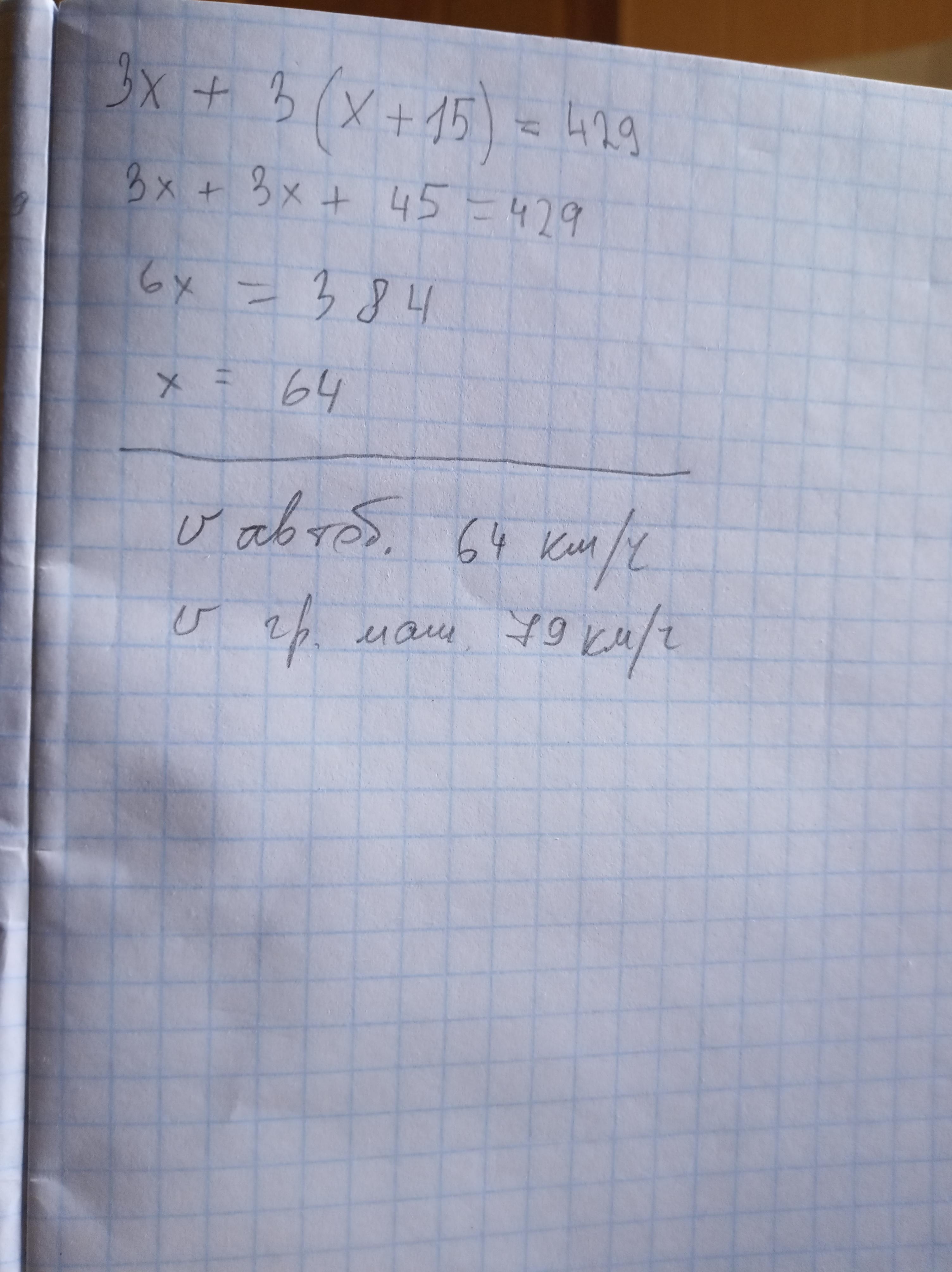 Ответ: v автобуса 64 км/ч, v гр. машины 79 км/ч.