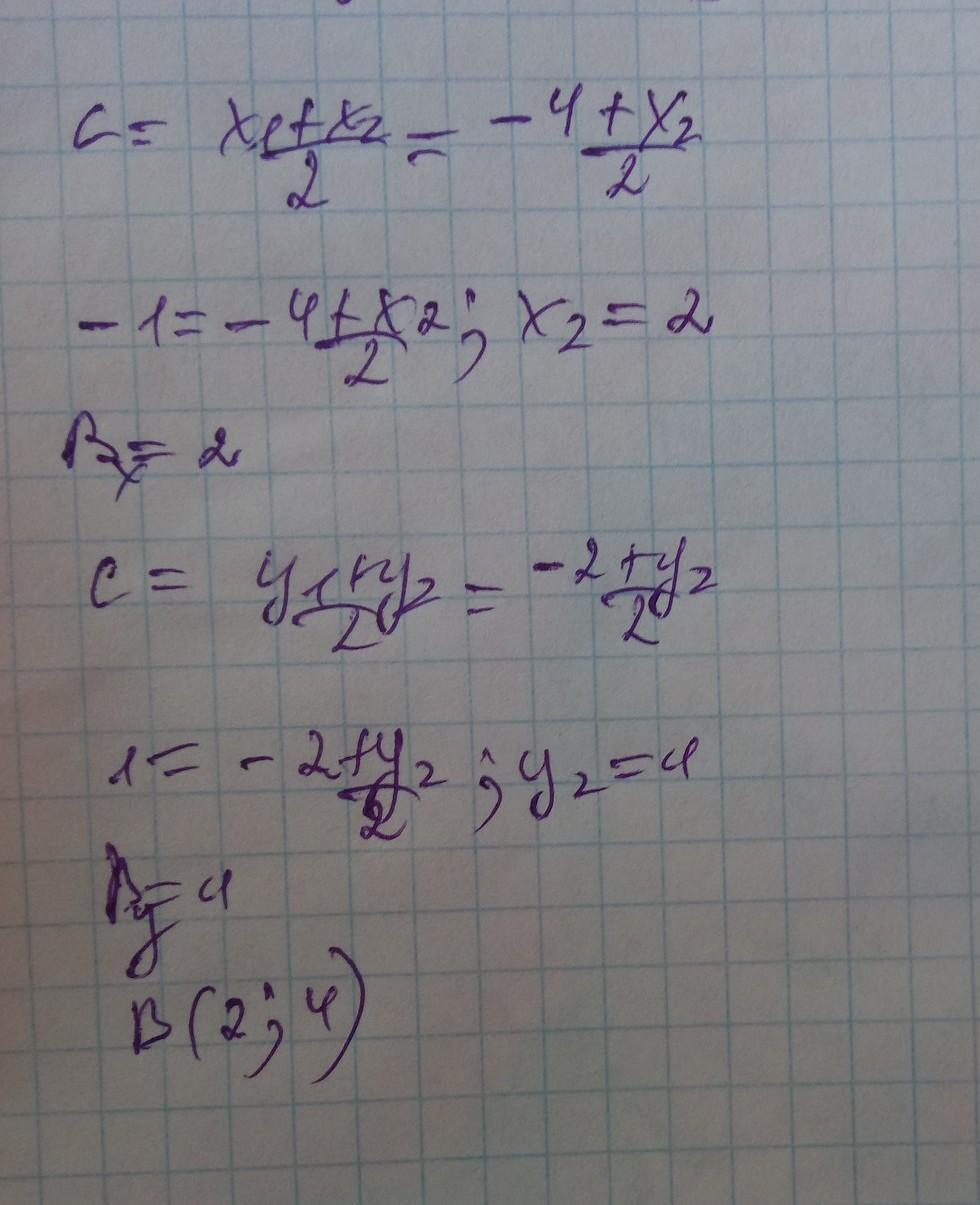 Даны точки А, В, С. Если А( -4; -2) и С(-1; 1) являются серединой отрезка АВ, то найдите координаты точки В.