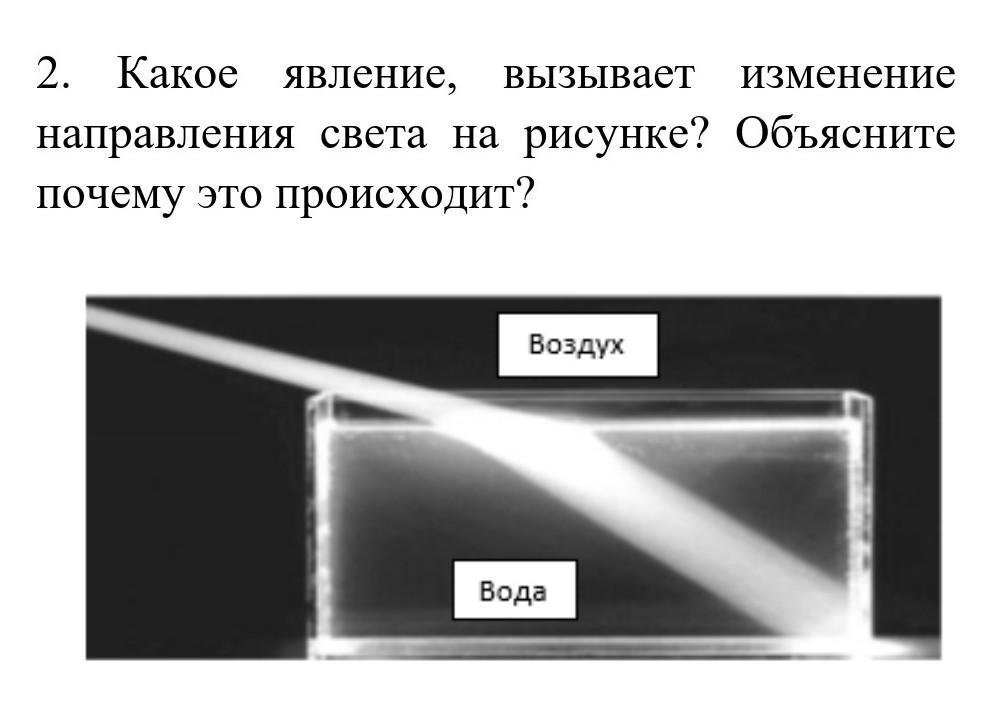 2. Какое явление, вызывает изменение направления света на рисунке? Объясните почему это происходит?