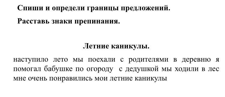 Наступило лето. Мы поехали с родителями в деревню. Я помогал бабушке по огороду, с дедушкой мы ходили в лес. Мне очень понравились мои летние каникулы.(или «!»)