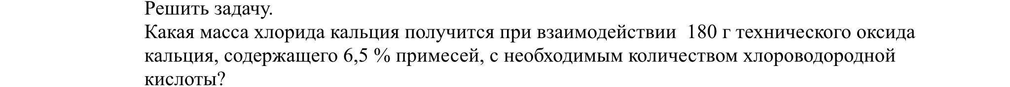 m(CaO)=180-180*0,01*w(примесей)=180-180*0,065=180-11,7=168,3 г