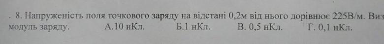 Ответ: |q| = 1 * 10-9 (Кл).= 1 нКл ответ Б