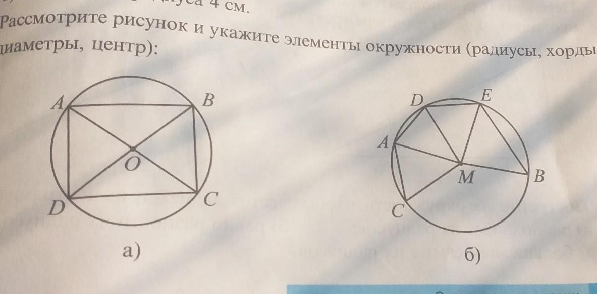 рассмотрите рисунок и укажите элементы окружности радиуса , хорды , диаметра , цент