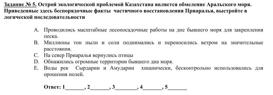 Приведенные здесь беспорядочные факты частичного восстановления Приаралья, выстройте в