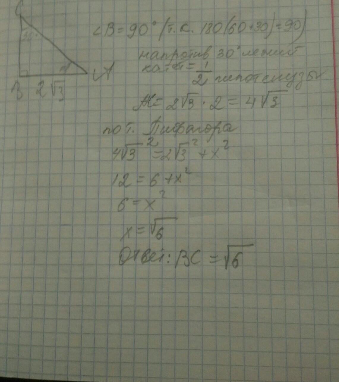напротив угла 30 градусов лежит катер равен половине гипотенузы