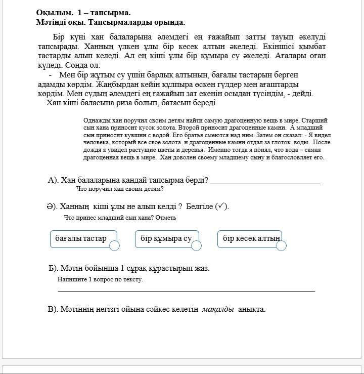 а)Əлемдегі ең ғажайып затты тауып əкелуге тапсырады