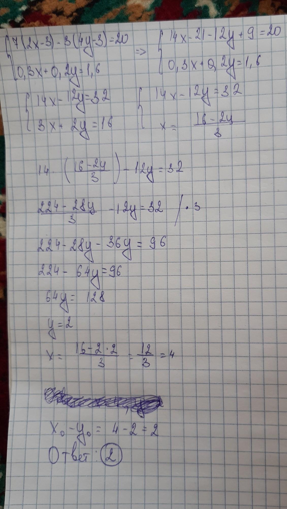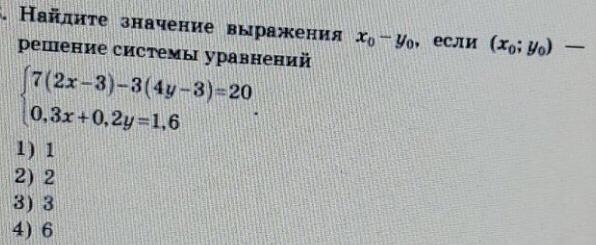 Найдите значения выражения х0-у0, если (х0;у0)— решение системы уравнений