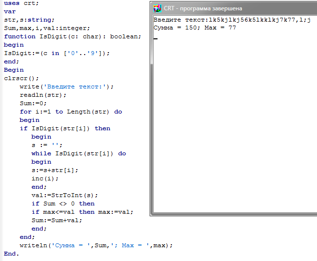 Дан текст, в котором имеются цифры.Дан текст, в котором имеются цифры. Найти их сумму. Найти максимальную цифру