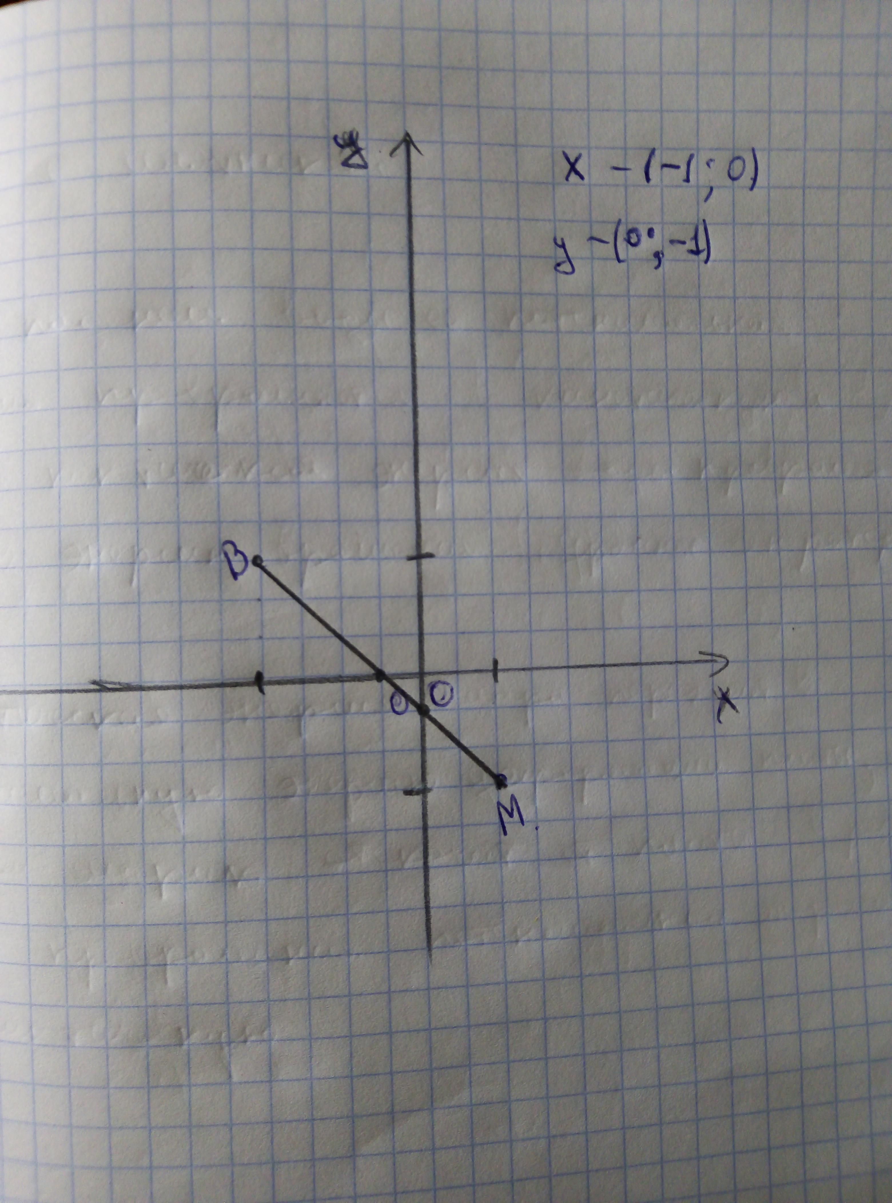 отметьте на координатной плоскости точки М (2;-3) и В (-4;3).Проведите отрезок МВ.Найдите координаты точки пересечения отрезка МВ с осью координат.