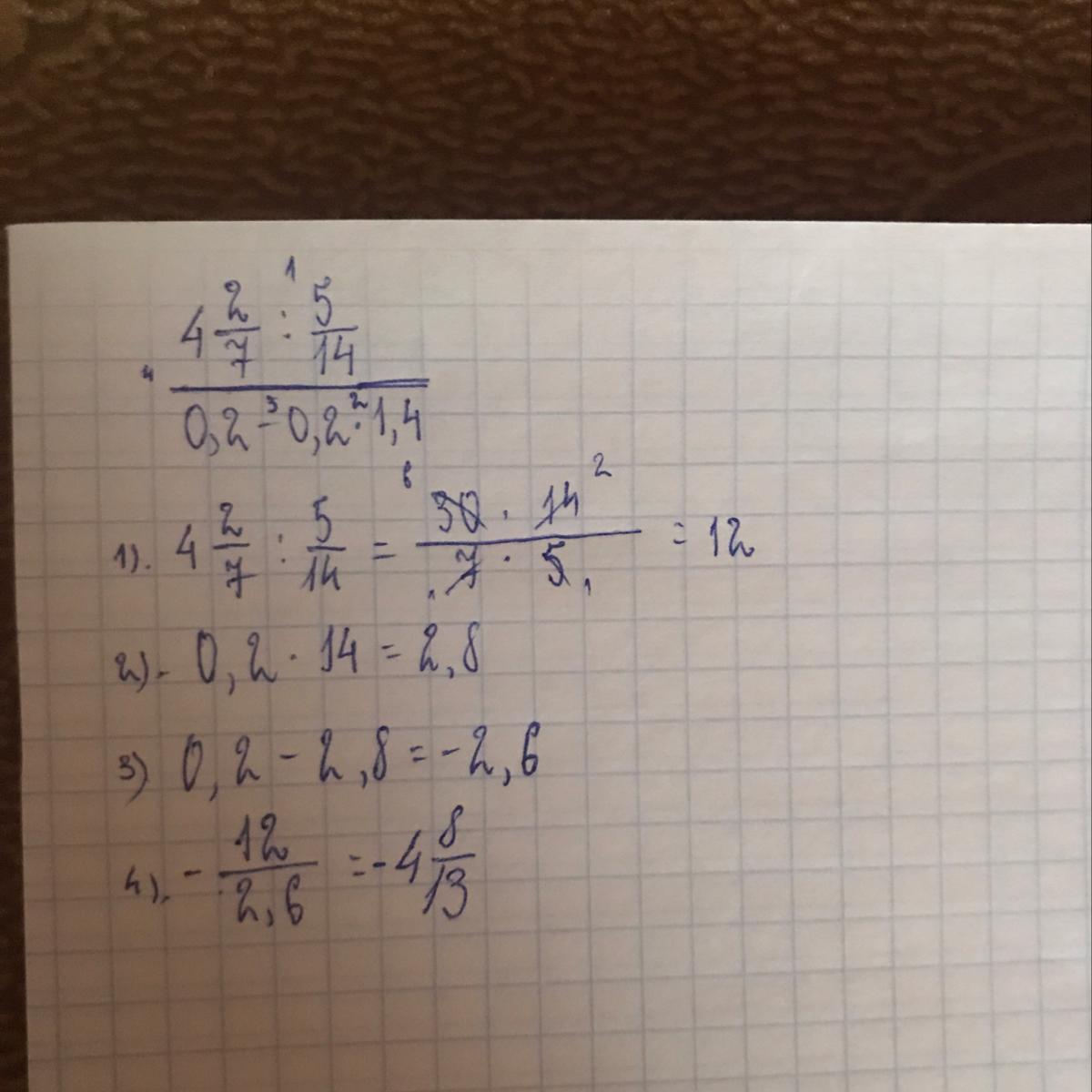 четыре целых 2 седьмых разделить на пять четырнадцатых