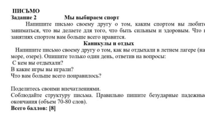 Это лето я провела в летнем лагере. Было очень весело и интересно. В первый день мы собрались и отправились на озеро. Со мной были мои одноклассники и наша вожатая Мария.