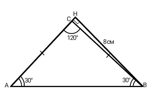 Рассмотрим ∆АНВ - прямоугольный. Против угла в 30 градусов лежит катет, равный половине гипотенузы. Поэтому, АВ = 8 см*2 = 16 см.