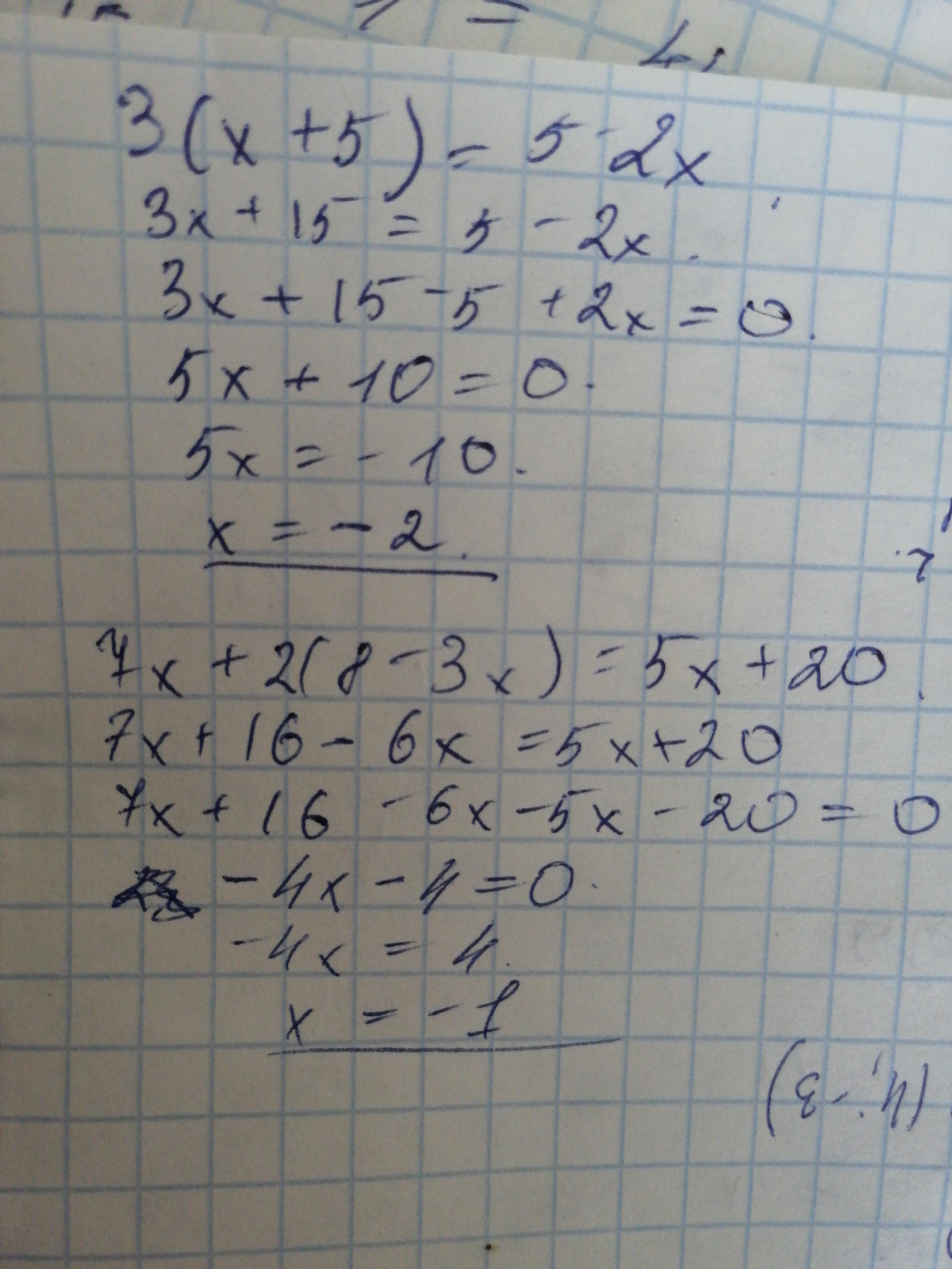 1) 3х+15=5-2х