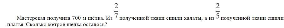 Если 1 Это 700, то его можно представить в числе если отнять то число из которого сделали 2 вида изделий (халаты и платья) то можно получить остаток ткани: