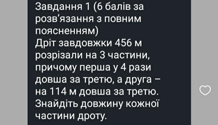 х=342/5=68.4/м/ длина третьей части, тогда первой 3*68.4=205.2/м/, а второй части 68.4+114=182.4/м/