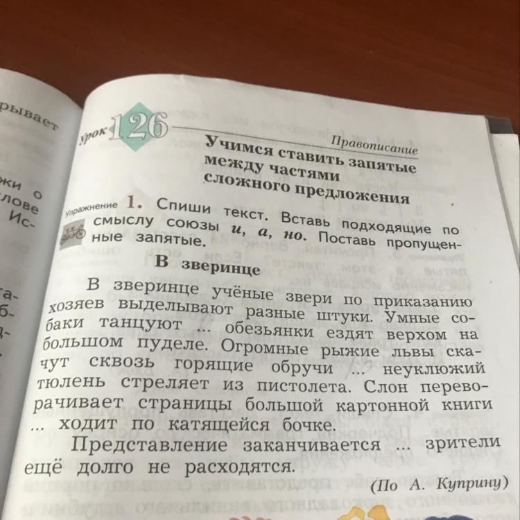 Ответ:В зверинце учёные звери, по приказанию хозяев выделывают разные штуки. Умные собаки танцуют, а обезьянки ездят верхом на большом пуделе. Огромные рыжие львы скачут сквозь горящие обручи, а неуклюжий тюлень стреляет из пистолета. Слон переворачивает страницы большой картонной книги, и ходит по катящейся бочке.