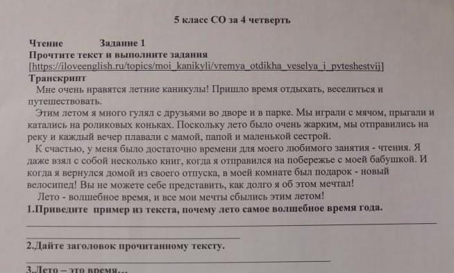 Ответ:Летние каникулы