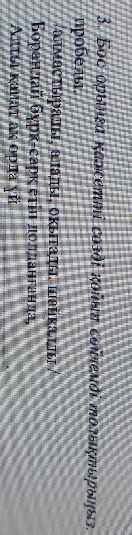 3. Бос орынға қажетті сөзді қойып сөйлемді толықтырыңыз.