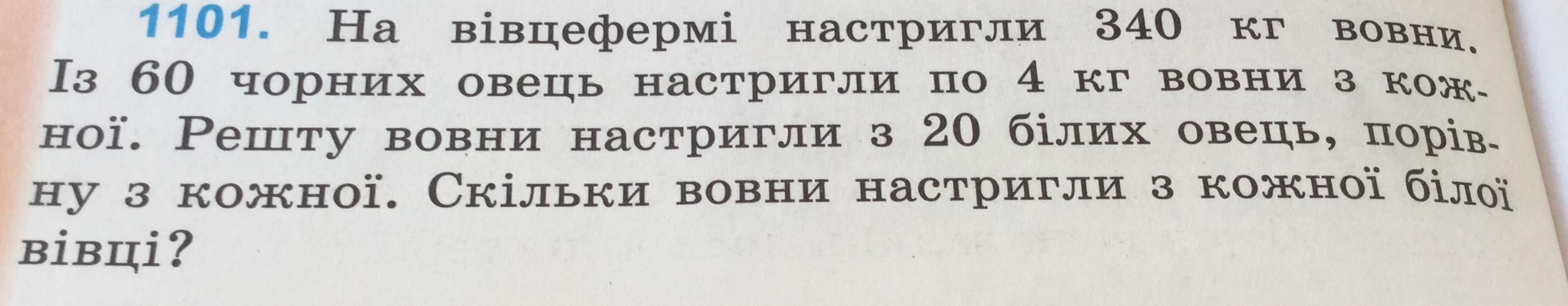 3) 100:20=5(кг) настригли з кожної білої вівці
