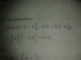 в) 625/100*8 - (3 2/3):55/10 + 24/10*(4 7/12) = 25/4*8 - 11/3*2/11 + 12/5*55/12 =