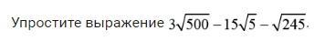 3 корінь з 500-15 корінь з 5-корінь з 245=3*10 корінь з 5-15 корінь з 5-корінь з 245=30 корінь з 5 - 15 корінь з 5 - 7 корінь з 5=8 корінь з 5 або ≈18