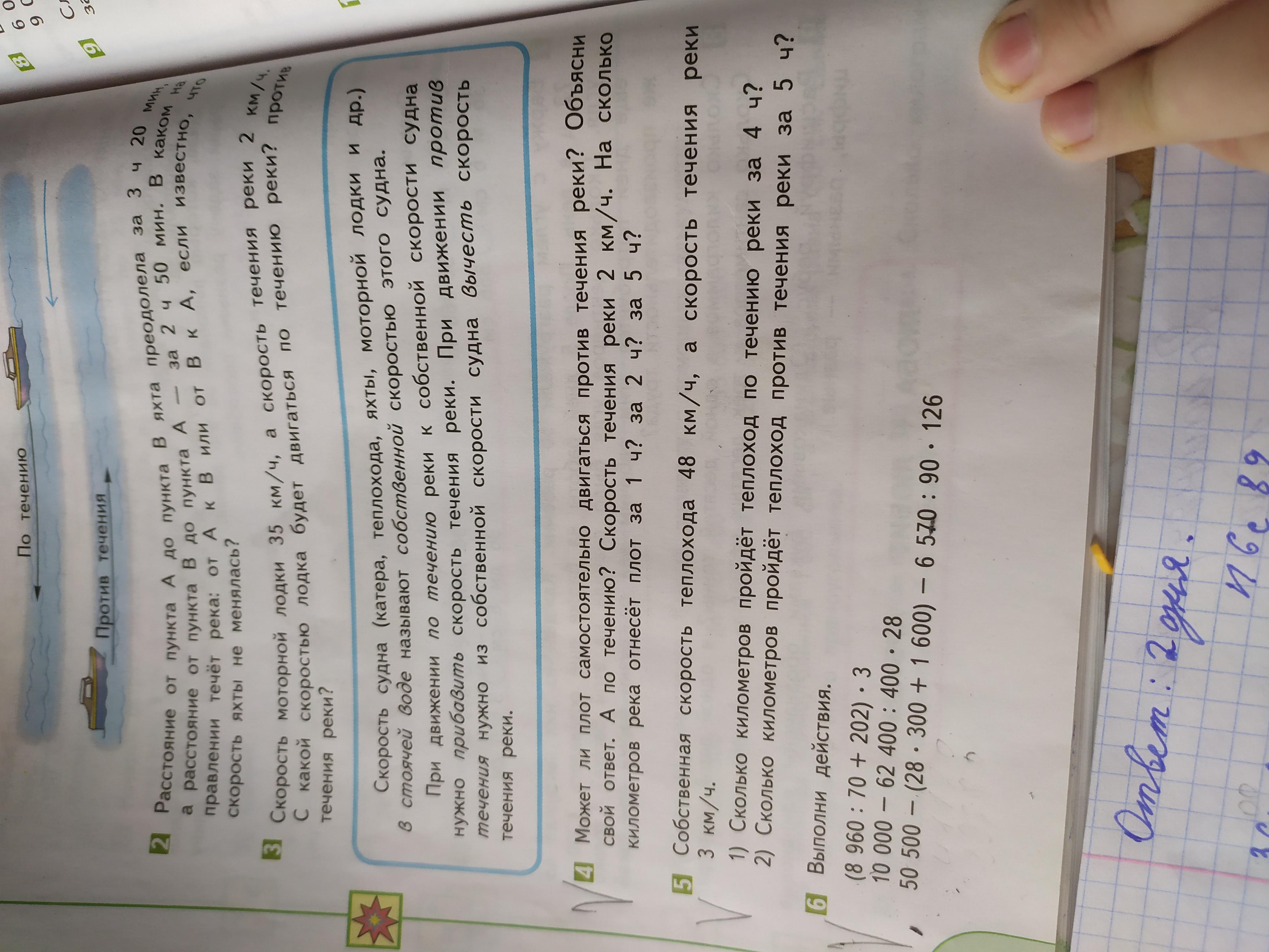 Сначала тоже эту тему не понимала. Чтобы найти км против течения реки нужно из скорости вычитать скорость течения, а если наоборот, то складывать.