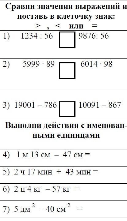 1) < , 2) < , 3) > , 4) 66 см , 5) 3 часа 6) 1 ц 47 кг 7) 4,6 дм`2