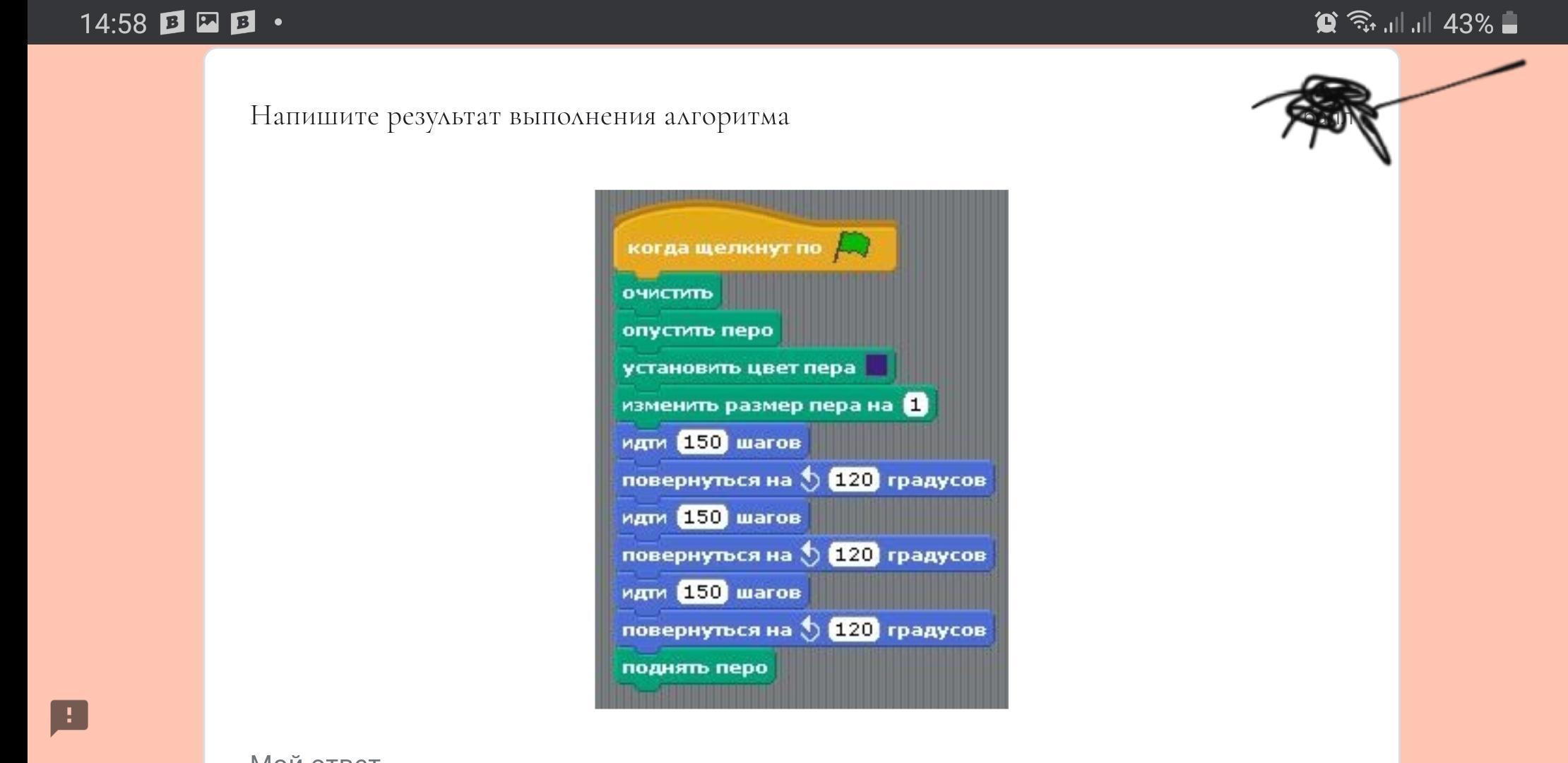 Ответ:Будет нарисован треугольник с размерами 150*150*150 шагов