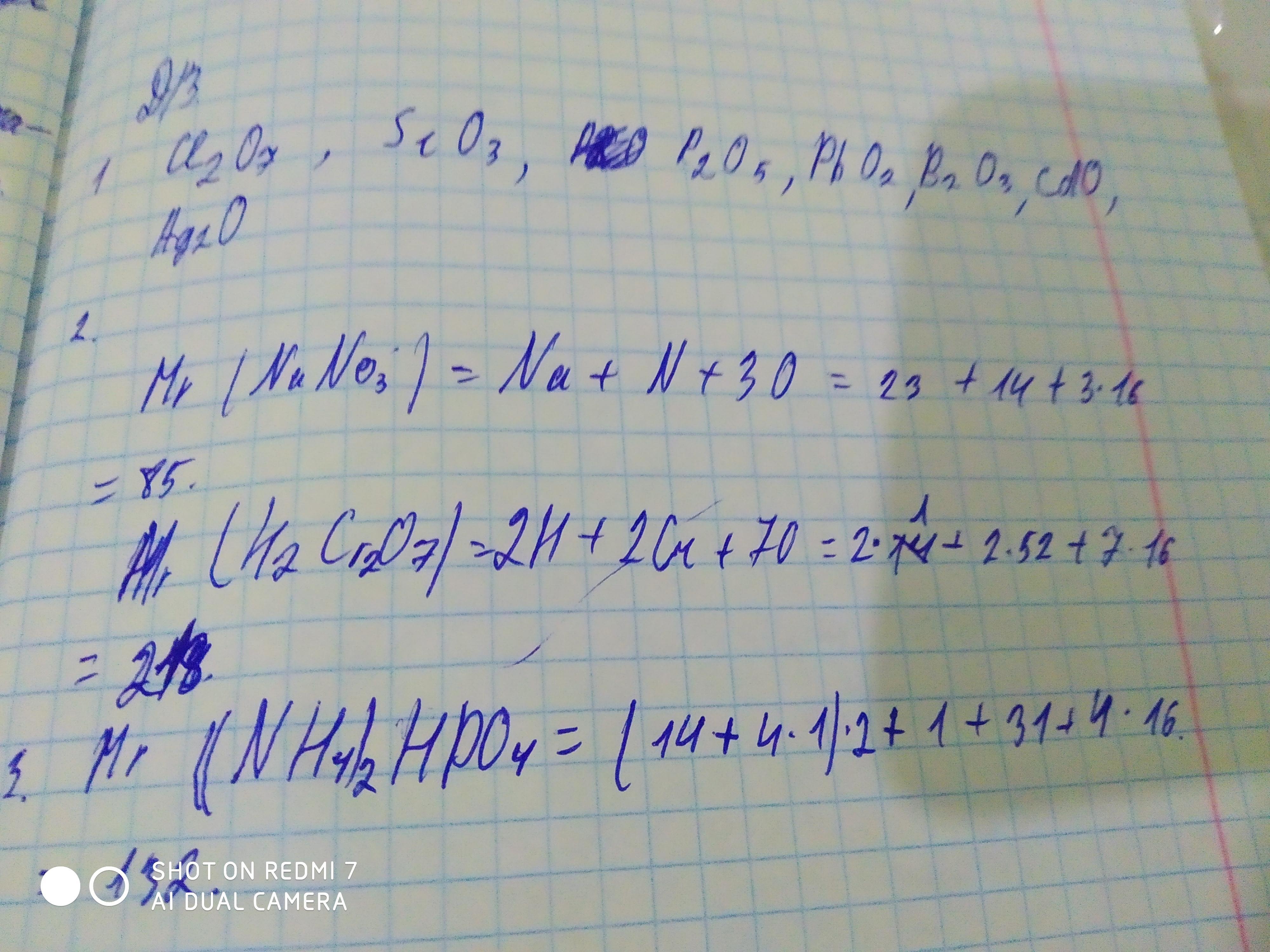 Рассчитайте относительные молекулярные массы следующих веществ: NaNO3, H2Cr2O7, (NH4)2HPO4.