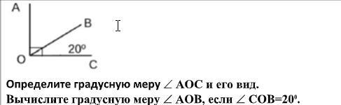 Градусная мера АОВ=70. 90-20=70.