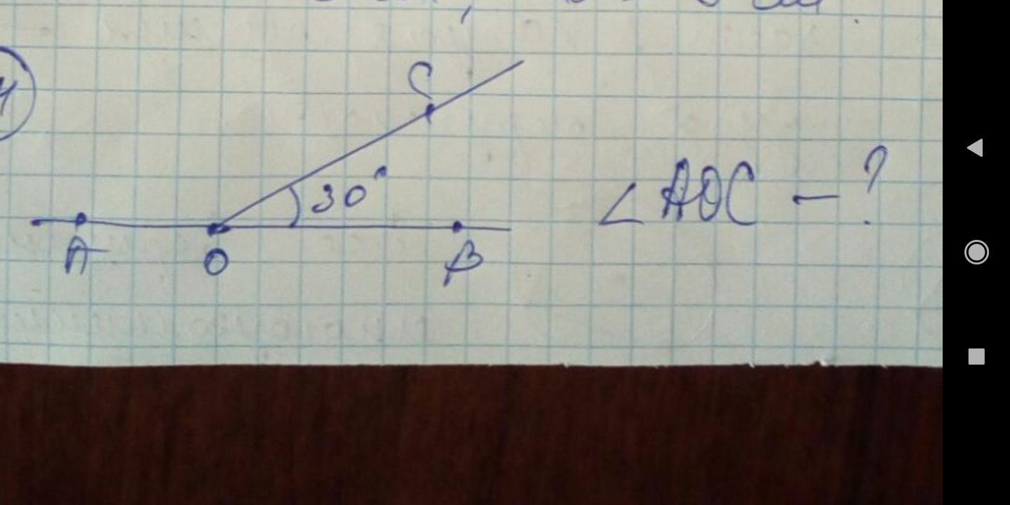 Угол АОС=угол АОВ - угол СОВ=180° - 30°=150°