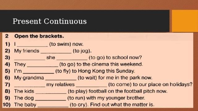 5.I'm flying to hong kong this Sunday.; 10.The baby is crying.