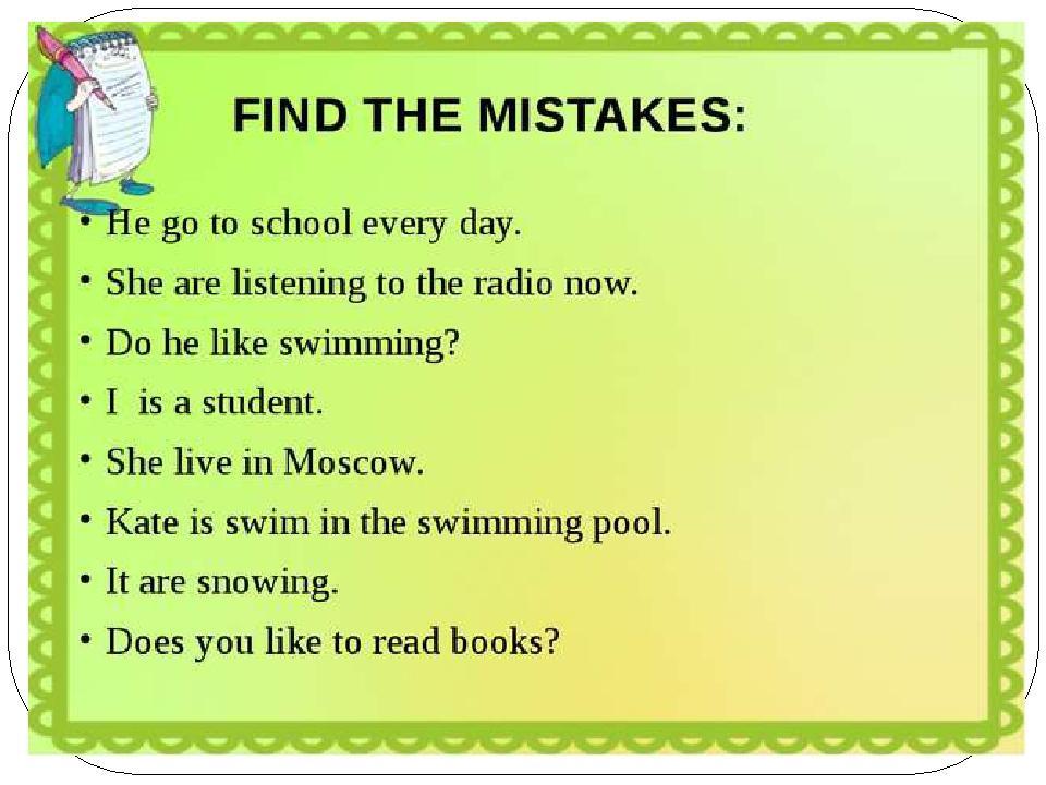 3.Do she is going to shcool now?; 8.The kids are playing football ...