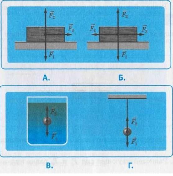 на рисунках изображены тела и действующие на него силы. какое из этих тел движется?