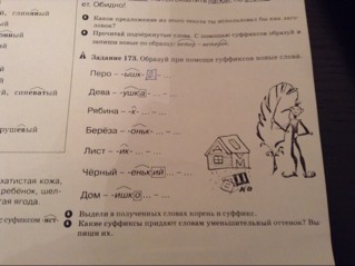 173: Пёрышко, девушка, рябинка, берёзонька, листик, чёрненький, домишко.