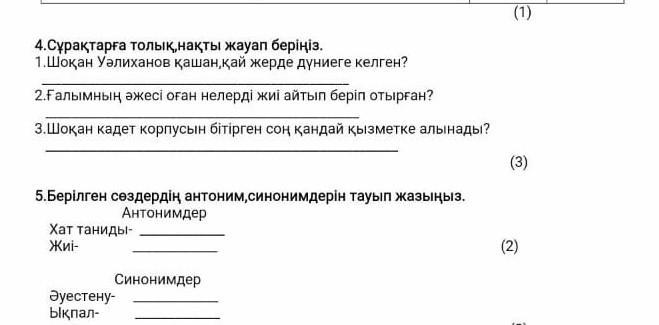 1. Шоқан Уәлиханов 1835 жылы, Қостанай облысы, Сарыкөл ауданында дүниеге келген