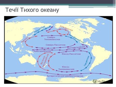 Поможіть будь ласка прошу!!!!!!! Зобразіть схематично основні системи течій,що утворються в Північній та Південній півкулях у Тихому океані.