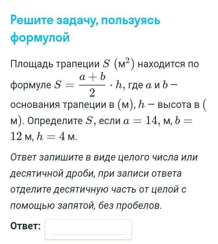 S=(14+12)/2×4=26/2×4=13×4=52м²