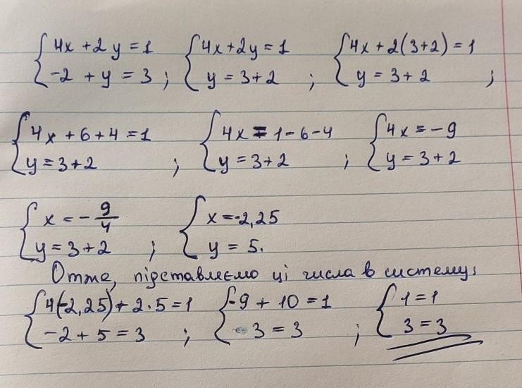 как то так, там написано: «Значит, подставляем эти числа в систему: »