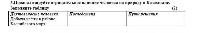 3.Проанализируйте отрицательное влияние человека на природу в Казахстане. Заполните таблицу