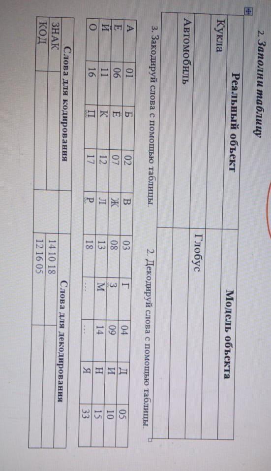 Закодируй слова с помощью таблицы.